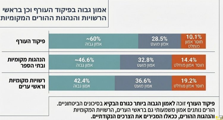 למרות הביקורת על פתיחת הלימודים והלמידה מרחוק ההורים הביעו אמון בגורמים הרשמיים: פיקוד העורף נמצא בראש, 60% מההורים סומכים עליו ועל החלטותיו. לאחר מכן נמצאות הנהגות ההורים המקומיות עם 46.6% והרשויות המקומיות וראשי הערים זוכים לרמת אמון של 42.4% .